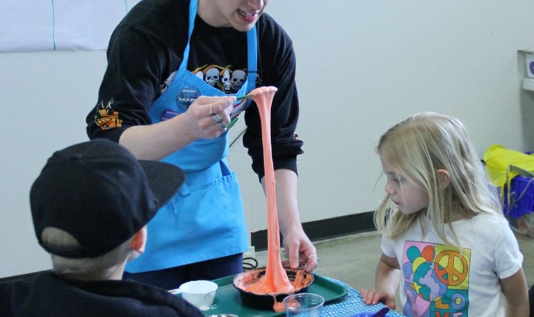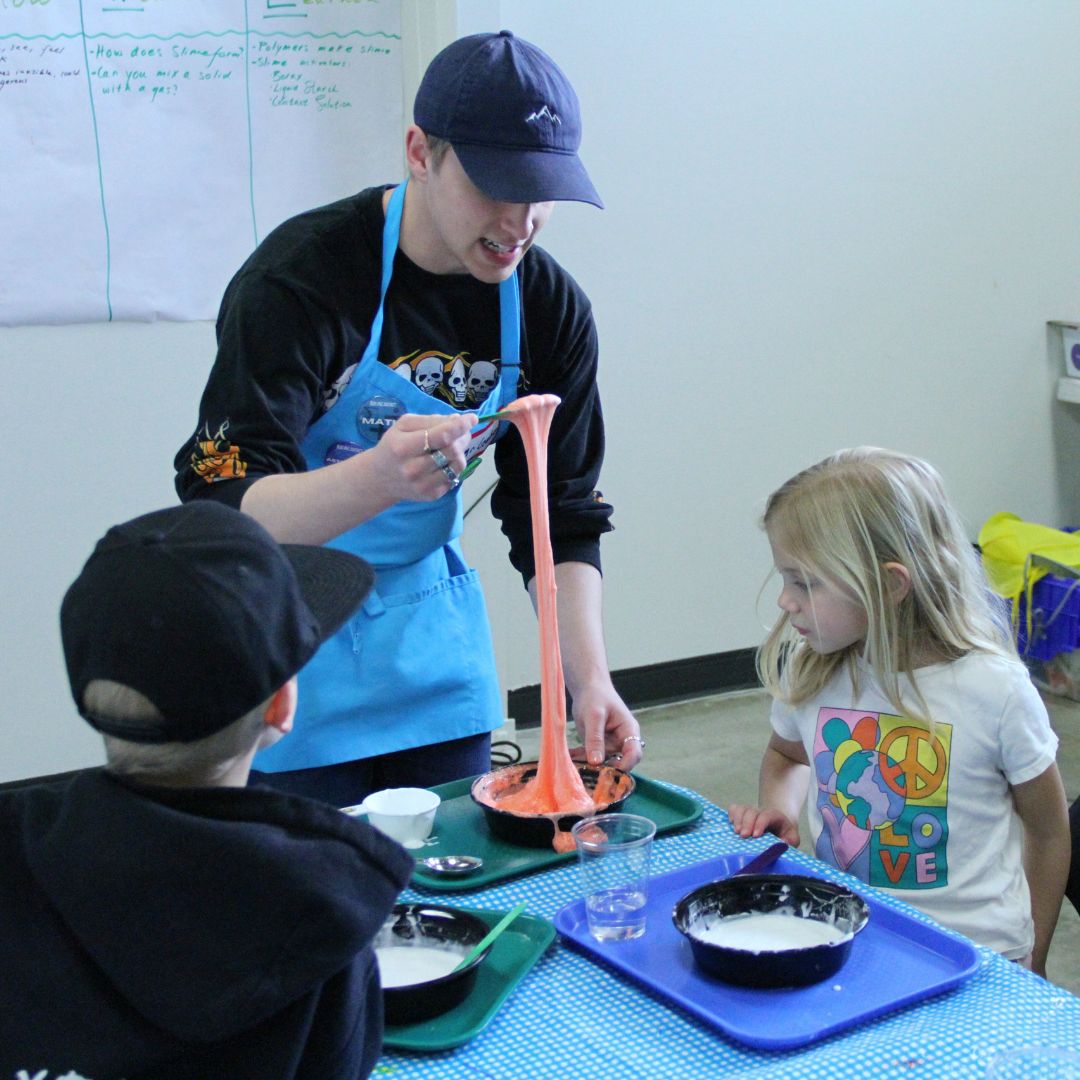 The Discovery Center of Idaho is Idaho's only hands-on science center. Over the summer and winter of 2022–2023, I led both summer and winter STEM camps for K–12 kids at the Discovery Center, including "All About Slime!" as pictured here! I remember going to the Discovery Center as a kid myself, and it was very rewarding to help get the next generation interested in all kinds of science.